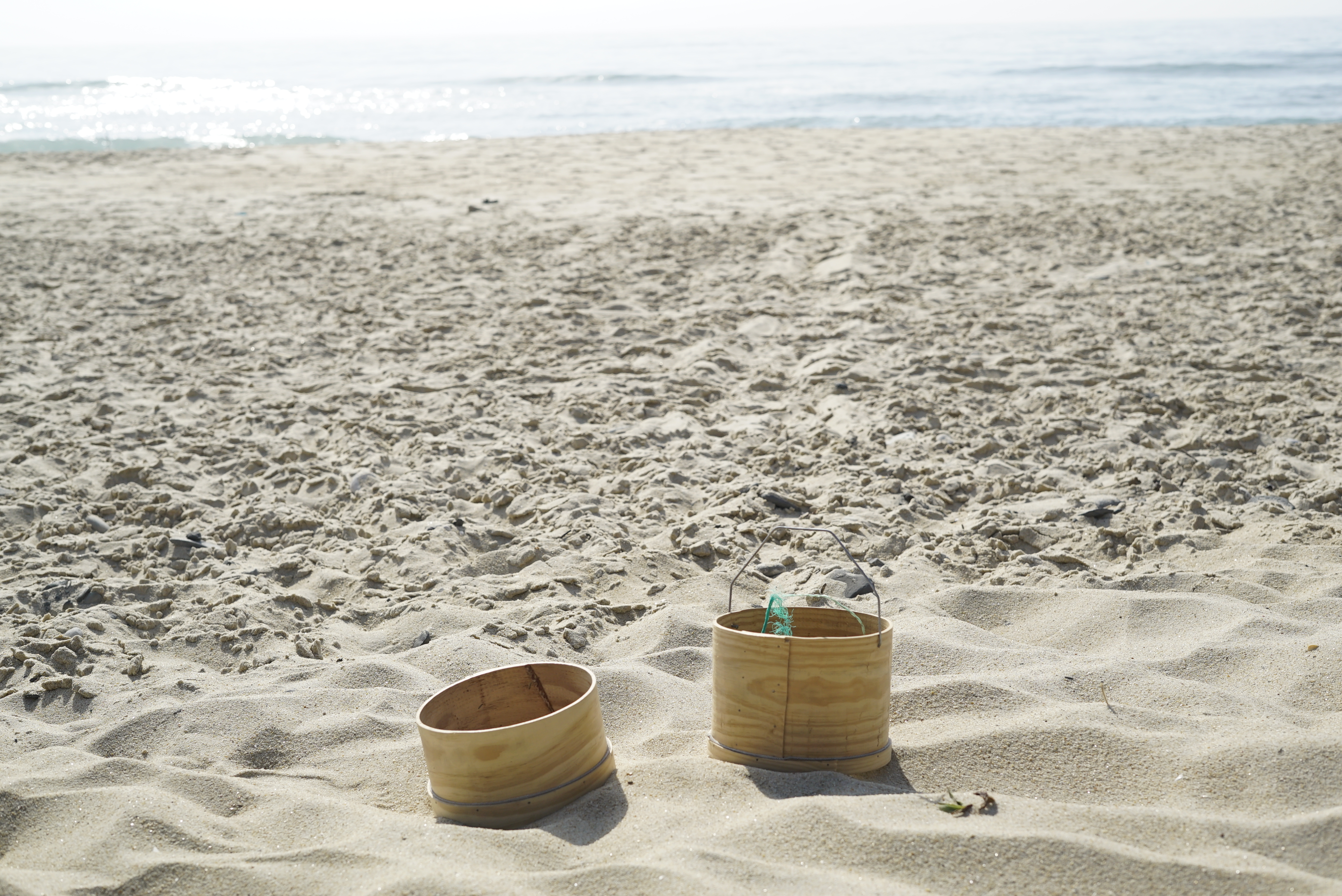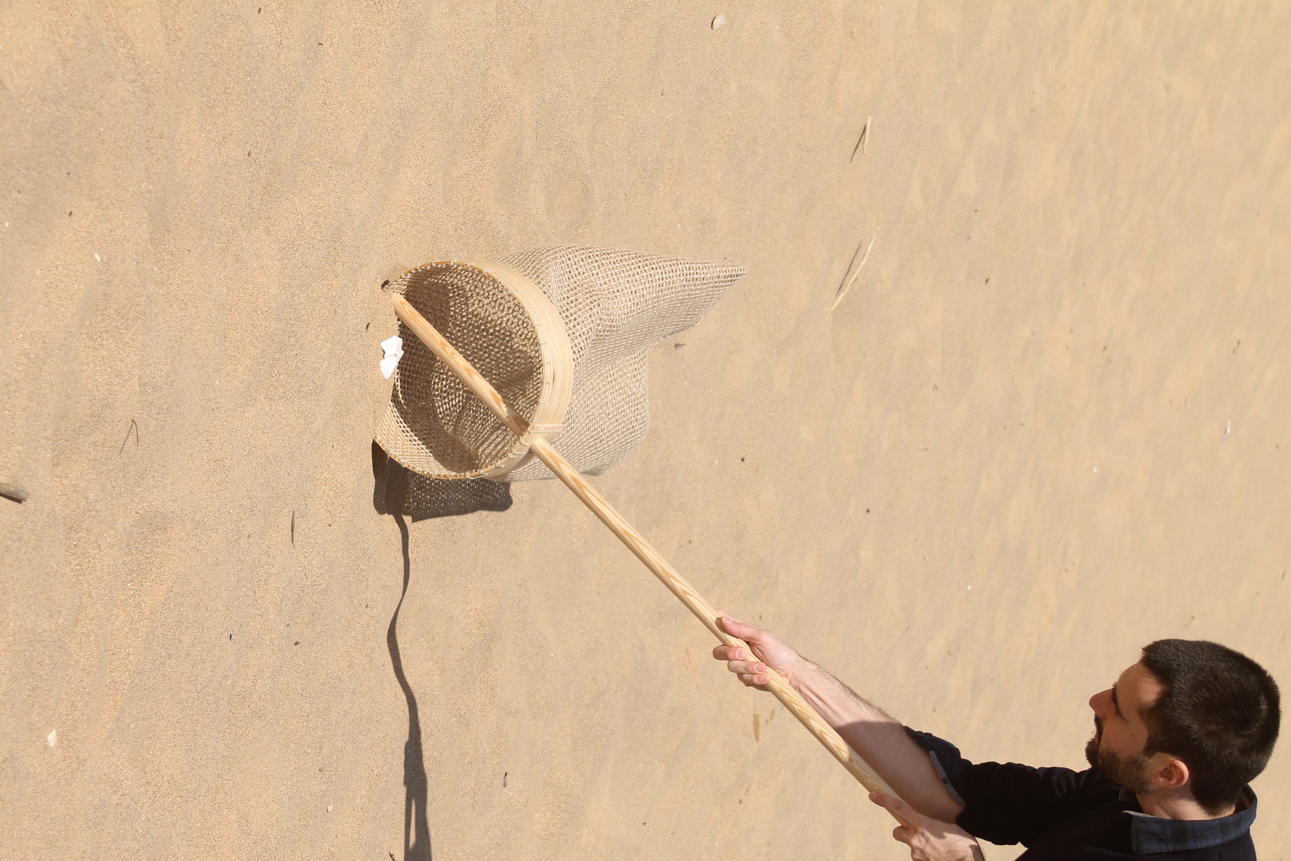 This research projects aimed to create a set of sand beach cleaning tools adequate to the commonly found ocean debris, specially microplastics. Departing from the concepts of activism, ideological objects were designed, blending the symbolism of the ambientalism cause with the significances of the materials and manufacturing process. One set of bucket wooden sieve with a tinsmith shovel and a catch all sand sieve were designed and produced for different users, children and adults.